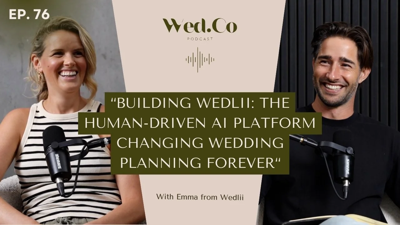 Welcome to Episode 76 of the Wed.Co Podcast. Today, Toga sits down with Emma from Emma Wise Photography for a chat about her 15-year journey in the wedding industry, the rise of editorial wedding photography, and how her new AI-powered platform Wedlii is set to transform the way couples plan weddings, filmed at Pod Byron Studio.